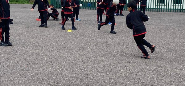 Both Third classes have recently started gaelic football training with our local hurling and football club, the Barrs. We have been learning some new skills