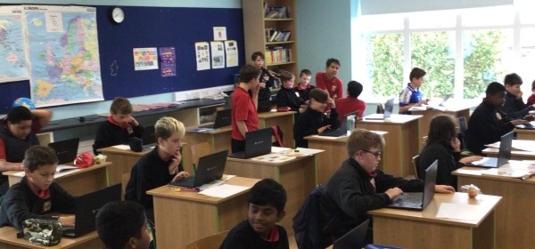 The boys in Ms Moynihan and Mr Murphy’s classes have been busy using the school’s new laptop trolley to develop their ICT skills. Using PowerPoint,