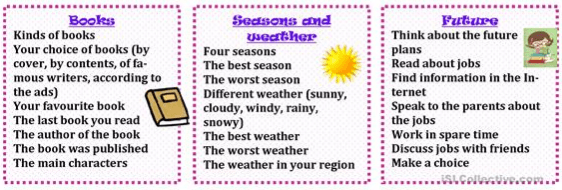 Speak on the Topics. This week again, I would like you to pick one of the topics in the box below and speak about this topic out loud, using the words and phrases to help you. You can send an audio file back to me, if you wish to do so.